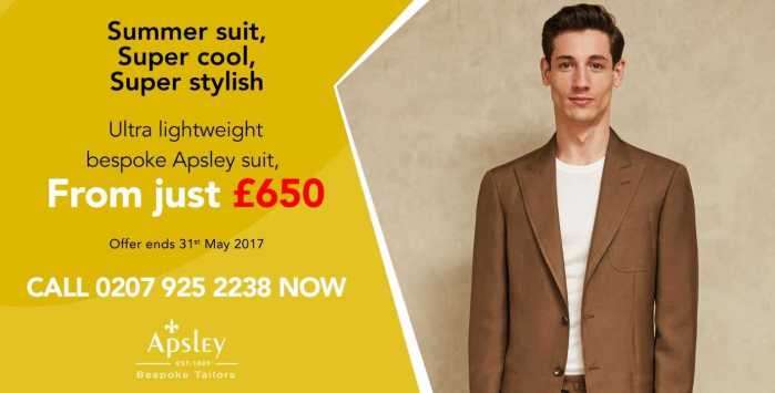 The days are hotting up. Don’t sweat it – keep cool! Get a bespoke Apsley suit, perfect for the summer, for just £650 this month.